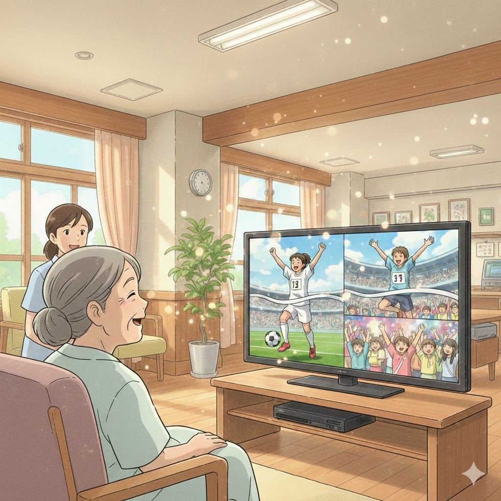 人間の脳には、他人の動きを見るだけで、自分が動いているかのように反応する「ミラーニューロン」という神経細胞があります。これはリハビリテーション医学でも「運動観察療法」として活用されており、アスリートの躍動感を見ることで、脳内の運動ネットワークが刺激され、ADL(日常生活動作)への意欲向上に寄与することがわかっています。